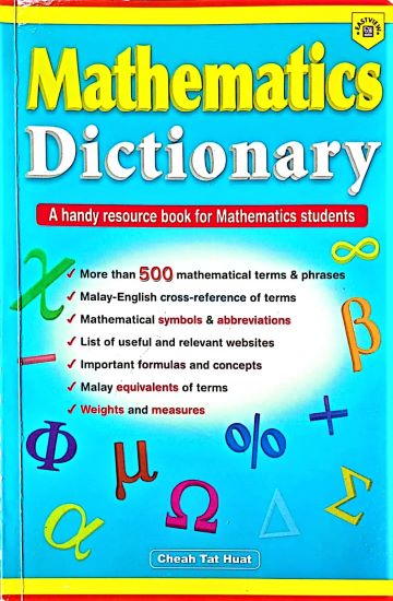 Over 500 headwords (with Malay Equivalents) culled from words used in Mathematics teaching in primary and secondary schools. Explanation in plain and simple English, accompanied by clear examples, diagrams and link to related words.